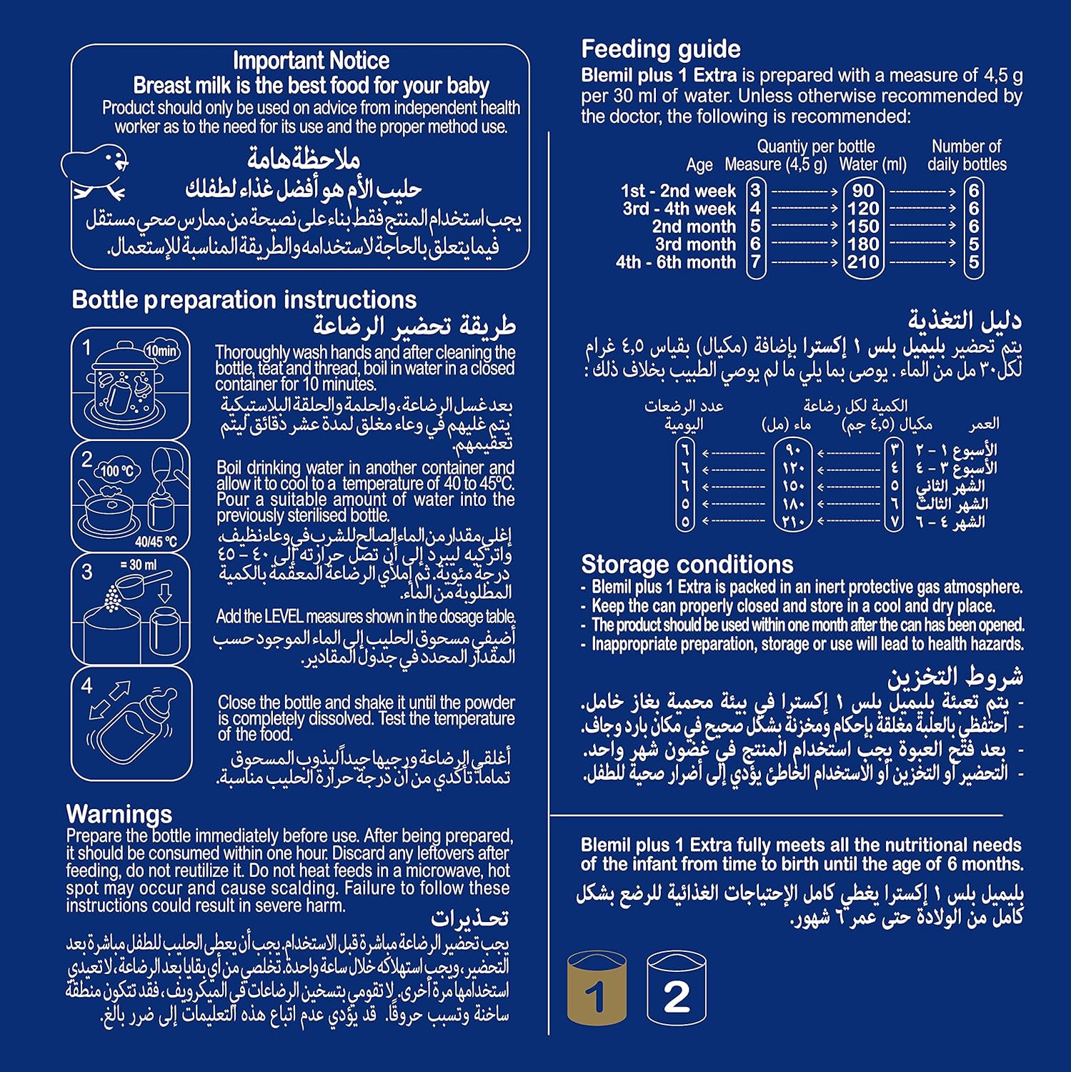امنحي طفلكِ حديث الولادة أفضل بداية مع حليب التركيبة المتابعة Blemil Plus Extra 1. صُممت هذه التركيبة الممتازة خصيصًا للرضع من اليوم الأول للولادة وحتى ٦ أشهر، مما يوفر تغذية كاملة خلال فترة النمو الحيوية هذه. تحتوي التركيبة المتطورة على مزيج متوازن من البروتينات والأحماض الدهنية الأساسية والفيتامينات والمعادن لدعم النمو الصحي.