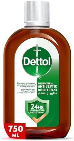 Ensure your family's safety with Dettol Antiseptic Disinfectant Liquid, a trusted solution for powerful germ protection. This versatile 750ml bottle is an essential for every home, effectively killing germs and providing peace of mind. Use it for first aid, personal hygiene, or household cleaning to create a clean and healthy environment.