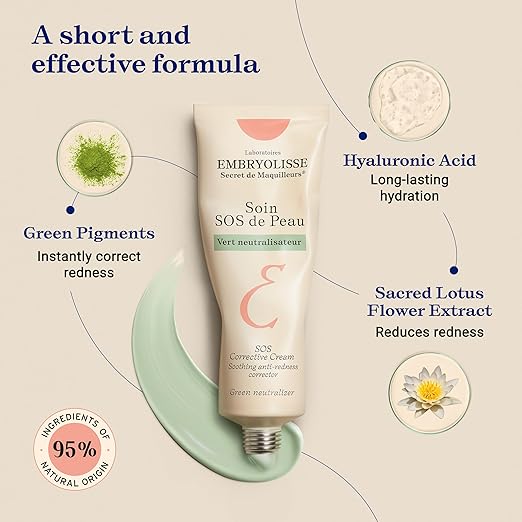 Discover the soothing power of Embryolisse SOS Anti-Redness Cream, a specialized 30ml treatment designed to calm and visibly reduce redness for a more even-toned complexion. This dermatologically tested cream works to neutralize visible redness, soothe discomfort, and reinforce the skin's natural barrier, making it an essential part of your daily skincare routine for sensitive and reactive skin.