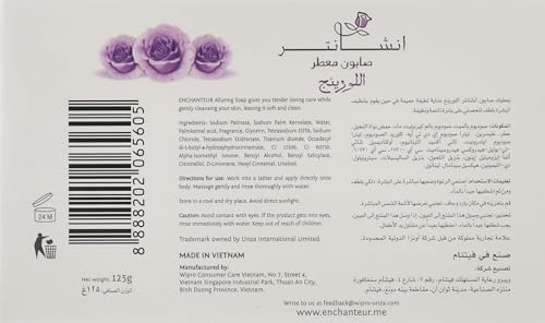 Transform your daily bathing routine into a luxurious escape with the Enchanteur Alluring Perfumed Soap. Crafted to captivate your senses, this exquisite soap blends gentle cleansing with a long-lasting, enchanting fragrance. Its rich, creamy lather purifies your skin, leaving it feeling soft, smooth, and delicately scented with the alluring notes of rose, iris, and creamy vanilla.