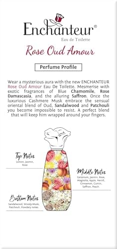 Indulge in the captivating aroma of Enchanteur Rose Oud Amour Eau de Toilette, a luxurious fragrance designed to enchant your senses. This exquisite scent combines the timeless elegance of rose with the deep, mysterious notes of oud, creating a sophisticated and romantic olfactory experience. Perfect for the woman who desires a long-lasting and alluring fragrance that leaves a memorable impression.
