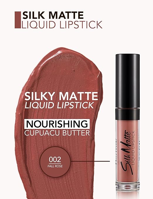 Indulge your lips in the rich, velvety perfection of Flormar Silk Matte Liquid Lipstick in the exquisite shade 002 Fall Rose. This luxurious liquid lipstick delivers an opulent matte finish that is both stunning and comfortable, designed for a look that lasts. Its highly pigmented formula glides on with ease, providing intense color payoff and full coverage without feeling heavy or drying. Achieve a sophisticated, captivating pout with this long-wearing lipstick, perfect for adding a touch of elegance to any makeup look. The beautiful Fall Rose hue offers a timeless and versatile appeal, making it an essential addition to your beauty collection.