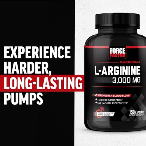 Unleash your potential with Force Factor L-Arginine, a premium amino acid supplement designed to support robust cardiovascular health and enhance athletic performance. L-Arginine is a critical precursor to nitric oxide, a molecule that helps relax and widen blood vessels, promoting healthy blood flow throughout the body. This high-potency formula delivers a significant 3,000 mg of L-Arginine per serving, making it an ideal choice for anyone looking to optimize their vascular function, improve circulation, and support muscle growth and recovery.