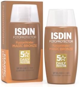 Discover the ultimate daily sun protection with ISDIN Fotoprotector Fusion Water - Bronze SPF 50. This innovative, ultra-light facial sunscreen offers very high broad-spectrum protection against UVA/UVB rays, combined with a natural-looking bronze tint that unifies skin tone and provides a healthy, radiant glow. Its revolutionary Fusion Water technology ensures immediate absorption into the skin, leaving no greasy residue and providing a refreshing sensation. Perfect for all skin types, including sensitive skin, this water-based formula is designed for everyday use, even on wet skin, making reapplication effortless. Protect your skin from sun damage while enhancing its natural beauty with a subtle, perfecting touch.