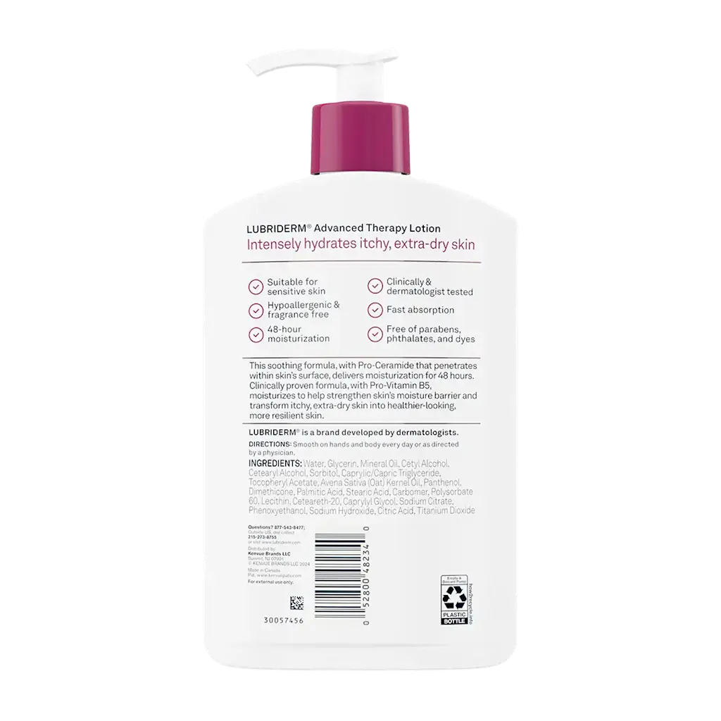 Experience deep hydration and relief for your dry skin with Lubriderm Advanced Therapy Daily Body Lotion. This expert-formulated lotion is designed to penetrate deeply, providing lasting moisture and comfort. Enriched with essential Vitamins E and B5, it helps to strengthen your skin's moisture barrier, leaving it feeling soft, smooth, and revitalized without a greasy residue. Ideal for daily use, this lotion offers a comprehensive solution for visibly healthier skin.