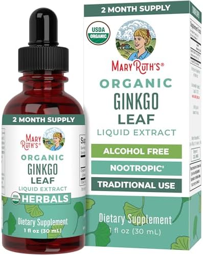 Elevate your cognitive and circulatory well-being with MaryRuth's USDA Organic Ginkgo Leaf Liquid Drops. This premium nootropic supplement is expertly formulated to support optimal brain function, including memory, focus, and mental clarity, while also promoting healthy blood flow throughout the body. Derived from high-quality, organic Ginkgo Biloba leaves, these easy-to-take liquid drops offer a convenient and effective way to integrate ancient wisdom into your daily health regimen for enhanced vitality and longevity.