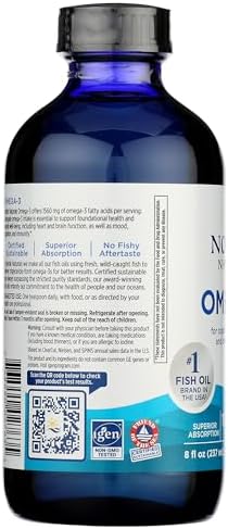 Elevate your daily wellness routine with Nordic Naturals Omega-3 Lemon, a premium fish oil supplement designed for comprehensive health support. This large 8 fl oz bottle provides a convenient and delicious way to ensure you're getting essential Omega-3 fatty acids, EPA and DHA, crucial for maintaining optimal health from head to toe. Enjoy the natural lemon flavor, making your daily dose a refreshing experience without the fishy aftertaste. Nordic Naturals is committed to delivering exceptional purity and freshness, ensuring every drop contributes to your vitality and supports healthy aging.