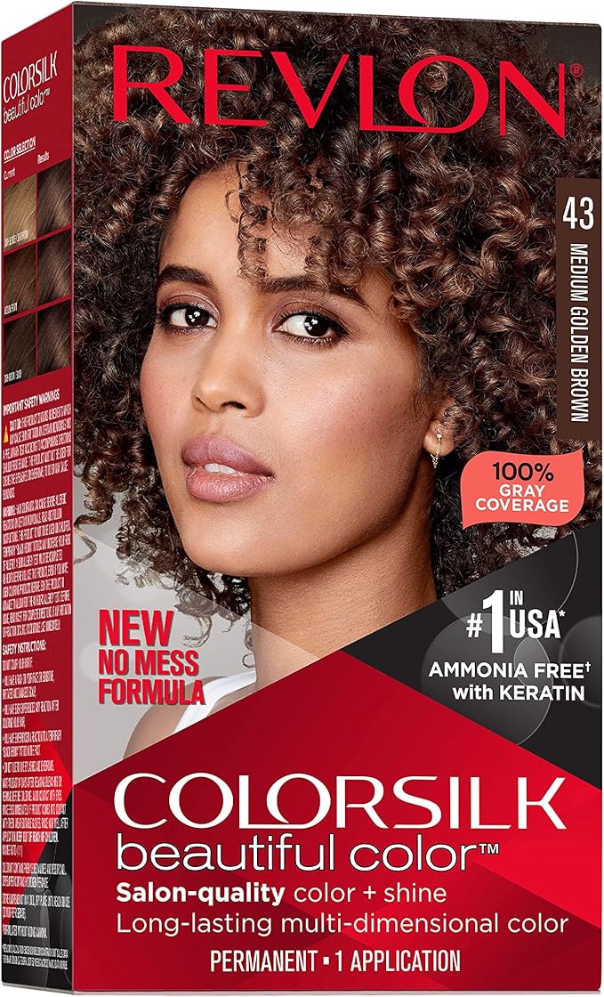 Transform your hair with Revlon ColorSilk Permanent Hair Color, expertly designed to deliver beautiful, long-lasting results. This advanced formula features a revolutionary Bond Repair Complex that strengthens and protects your hair during the coloring process, ensuring a healthy, vibrant finish. Achieve flawless, 100% gray coverage with ease, all while enjoying an ammonia-free experience. Infused with Vegan Keratin, Revlon ColorSilk leaves your hair feeling soft, smooth, and nourished after every application. Discover the rich, natural-looking 43 Medium Golden Brown shade and embrace hair that looks as good as it feels.
