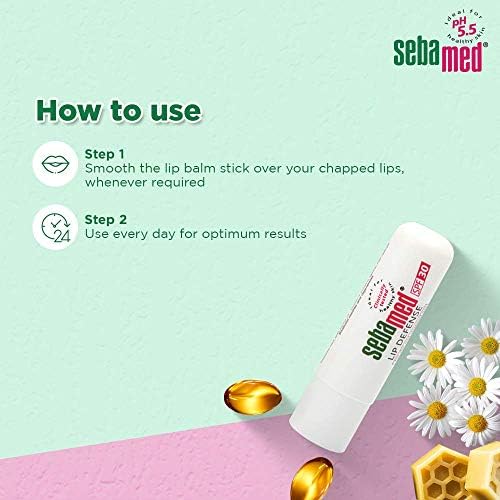 Protect and nourish your delicate lips with Sebamed Lip Defense SPF 30, specially formulated for dry and sensitive lips. This advanced lip balm provides intensive care, offering superior hydration and defense against environmental aggressors. Infused with Vitamin E, a powerful antioxidant, it helps to soothe irritation, regenerate chapped lips, and maintain their natural moisture balance. The added SPF 30 ensures broad-spectrum protection from harmful UVA and UVB rays, preventing sun-induced damage and premature aging of the lips. Experience instantly smoother, softer, and healthier-looking lips with a non-greasy, comfortable feel.