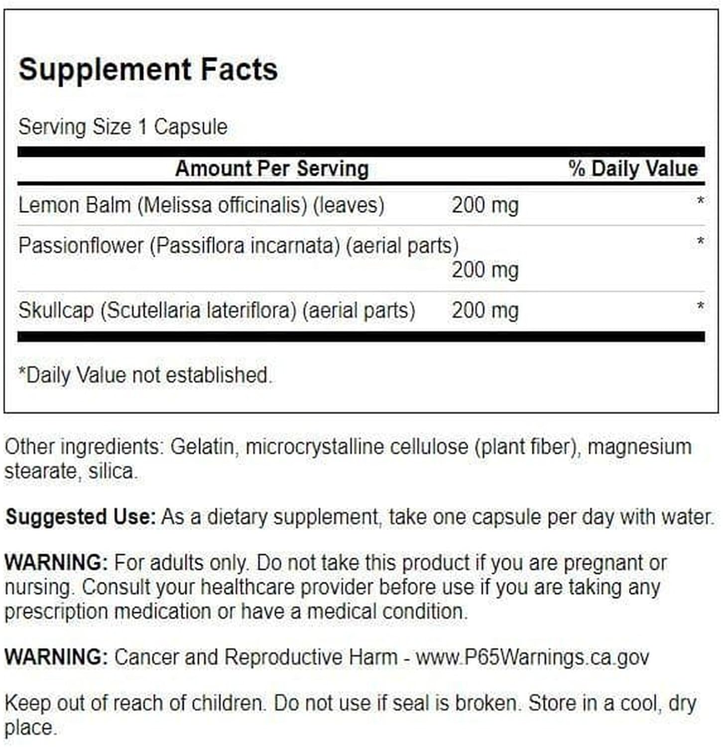 مُصنع وفقًا لأعلى معايير الجودة، يوفر هذا المركب توليفة تآزرية من النباتات القوية. يشتهر بلسم الليمون بخصائصه المهدئة، في حين تُستخدم زهرة الآلام على نطاق واسع لتخفيف التوتر ودعم النوم الهادئ. وتُكمل العُكبرة (سكلسكاب) هذه المكونات باستخدامها التقليدي لدعم الجهاز العصبي، خالقة صيغة شاملة تهدف لمساعدتك على تحقيق حالة متزنة وهادئة.